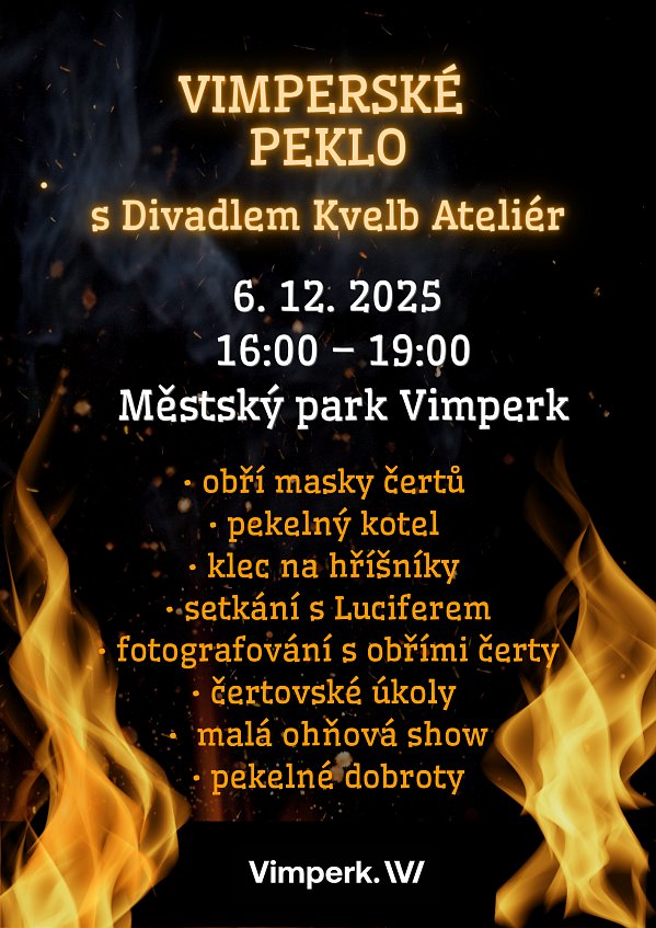 Obří masky čertů, focení s čerty, pekelný kotel, klec na hříšníky, úkoly pro děti, čertovská diskotéka, ohňová show.