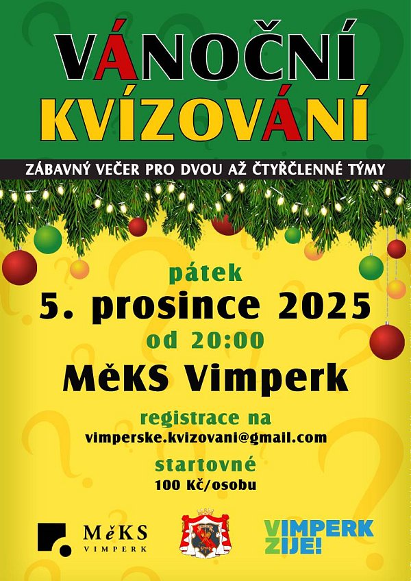 Přihlaste se předem (NÁZEV TÝMU + POČET ČLENŮ) na vimperske.kvizovani@gmail.com a vyčkejte na potvrzení Vaší rezervace. Děkujeme!