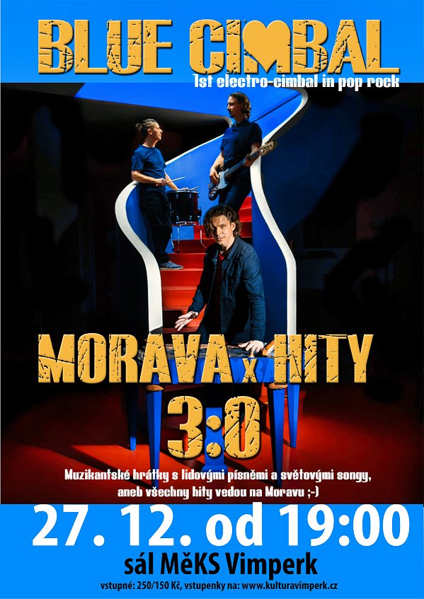 Morava x Hity 3:0, aneb všechny songy vedou na Moravu. Pop-rockové trio, kde cimbál nahradil kytary a vydal se na pouť od lidových písní až ke světovým hitům, které propojuje do nečekaných souvislostí.