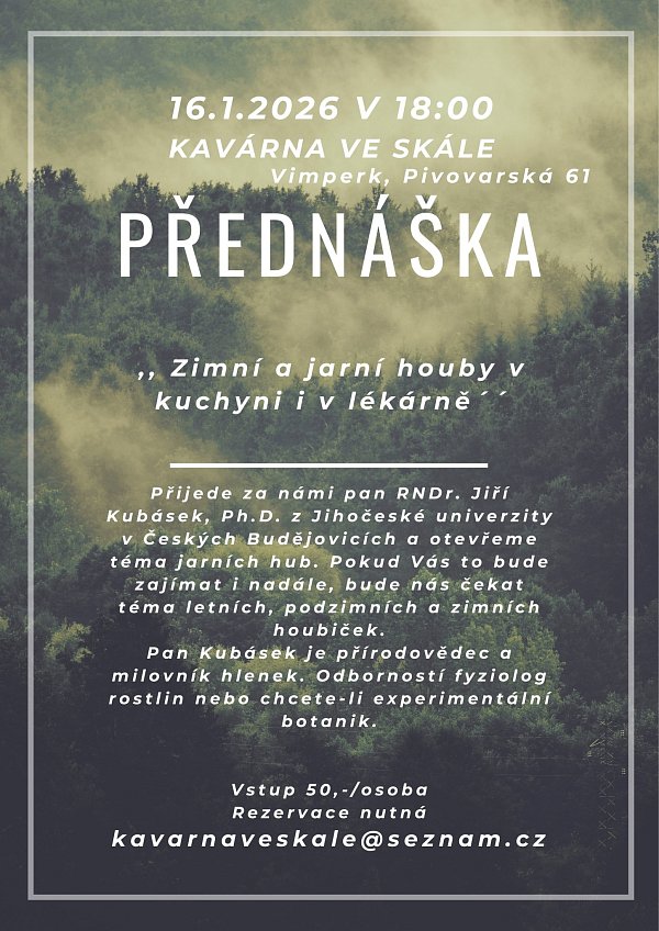 Přednášející je pan RNDr. Jiří Kubásek, Ph.D. z Jihočeské univerzity v Českých Budějovicích a otevřeme téma jarních hub. Pokud Vás to bude zajímat i nadále, bude nás čekat téma letních, podzimních a zimních houbiček. Pan Kubásek je přírodovědec a milovník hlenek. Odborností fyziolog rostlin nebo chcete-li experimentální botanik.
